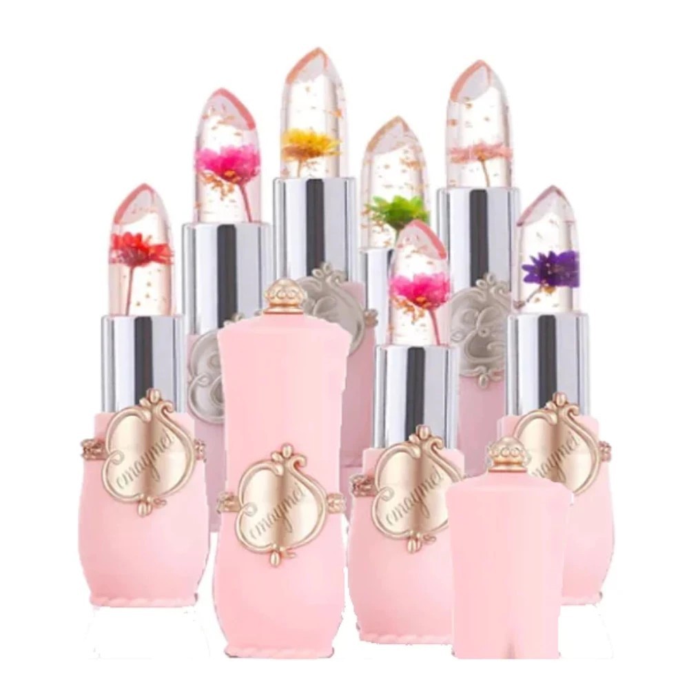 Flor Encapsulada: Cada batom contém uma delicada flor verdadeira no interior, tornando-o único e encantador.
