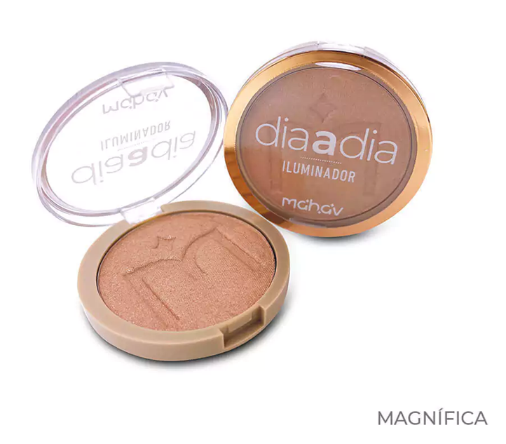 O Iluminador em Pó Compacto Dia a Dia Mahav Cor Magnífica adiciona um toque de luminosidade delicada. Desenvolvido com micropartículas brilhantes que se fundem na maquiagem. Formulado com agente emoliente que auxilia no deslizamento e espalhabilidade, proporcionando um sensorial sedoso à pele.
