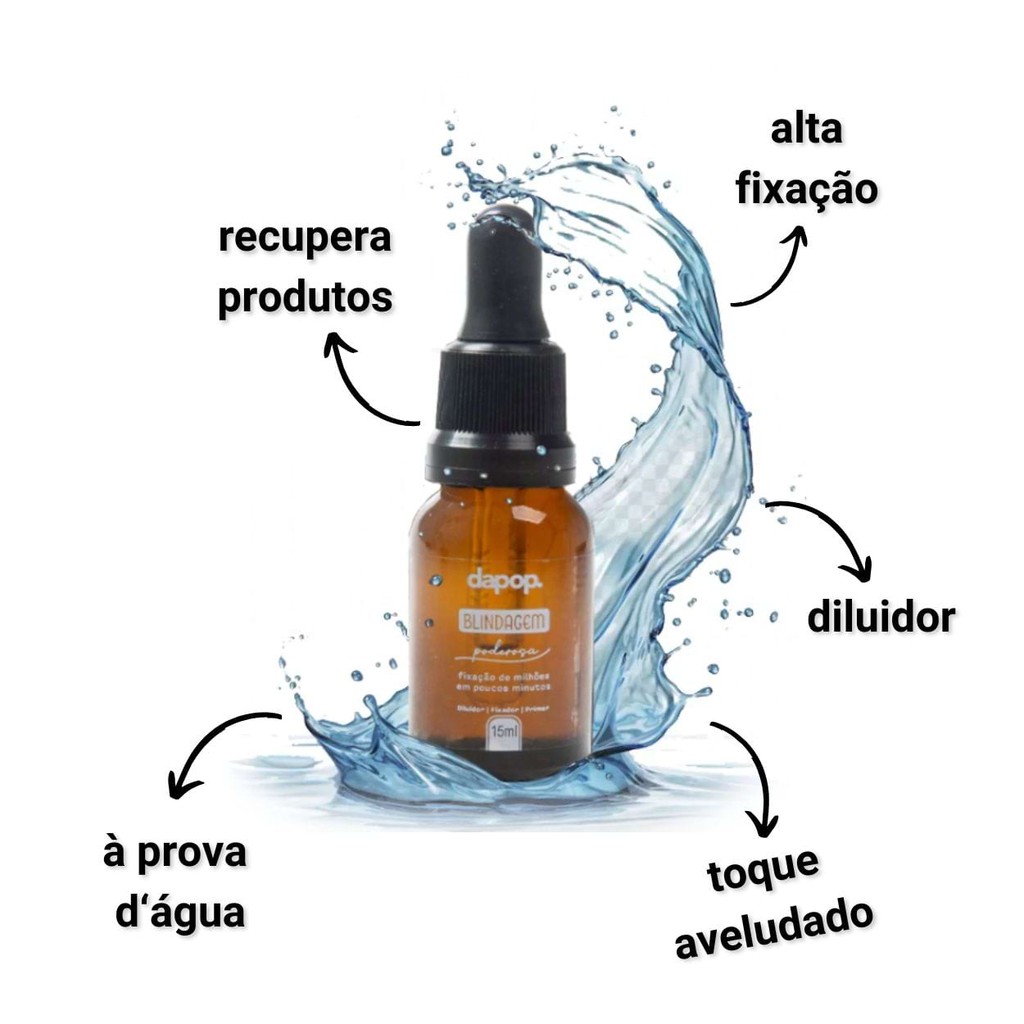 Diluir produtos: adicione algumas gotas da Blindagem Dapop em sombras, delineadores ou pigmentos para potencializar a fixação.