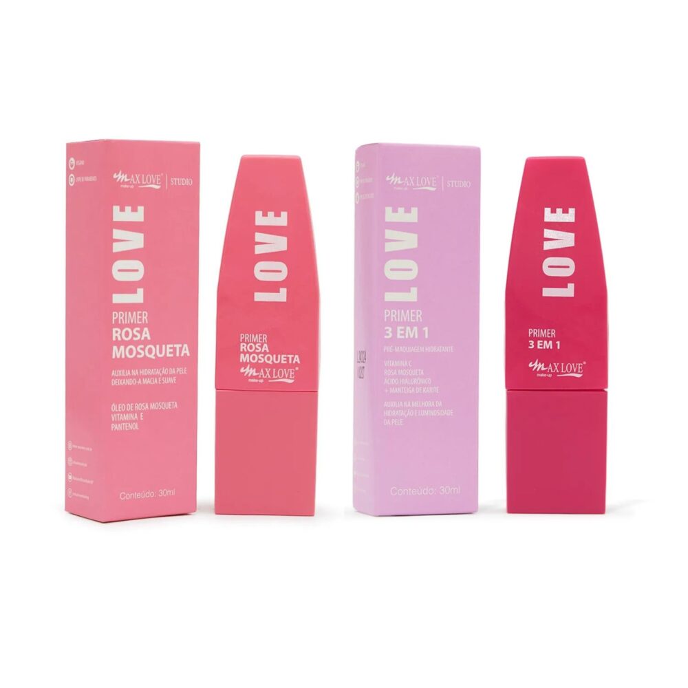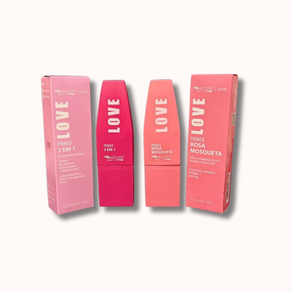 A linha de Primers Faciais Max Love foi desenvolvida para preparar a pele, garantindo uma maquiagem mais uniforme, duradoura e com acabamento impecável. Suas fórmulas combinam ativos de tratamento e hidratação, como óleo de rosa mosqueta, vitamina E, vitamina C, ácido hialurônico, D-Pantenol e manteiga de karité, que ajudam a suavizar a textura da pele, minimizar a aparência dos poros e linhas finas, além de nutrir e proteger contra o ressecamento. Com textura leve e de rápida absorção, deixam a pele macia, radiante e pronta para receber a maquiagem, proporcionando conforto durante todo o dia. Indicados para todos os tipos de pele.