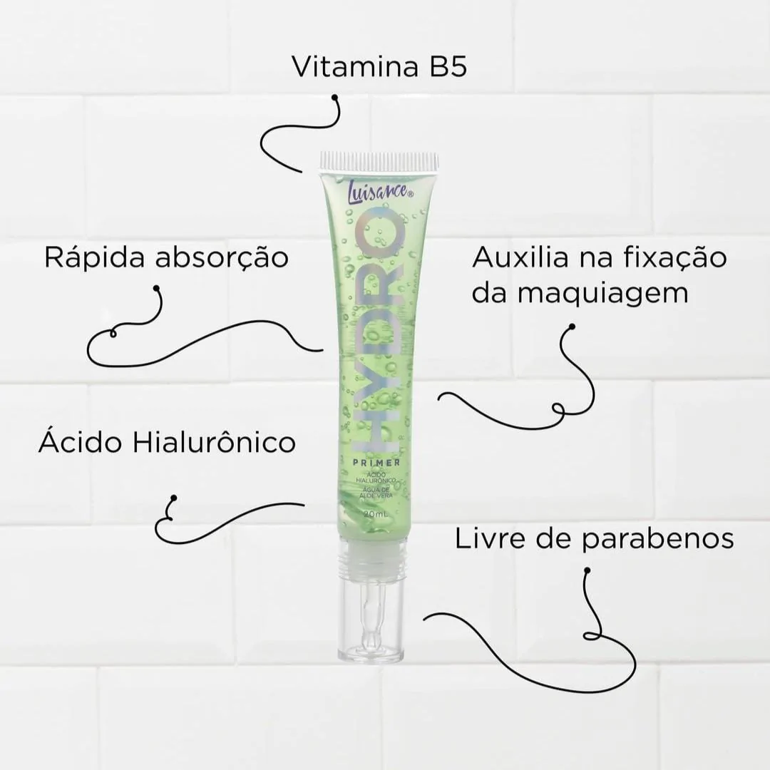 O Primer Hydro Luisance prepara a pele para a maquiagem enquanto hidrata profundamente com ácido hialurônico. Sua fórmula leve suaviza linhas finas, minimiza poros e garante maior fixação da make.